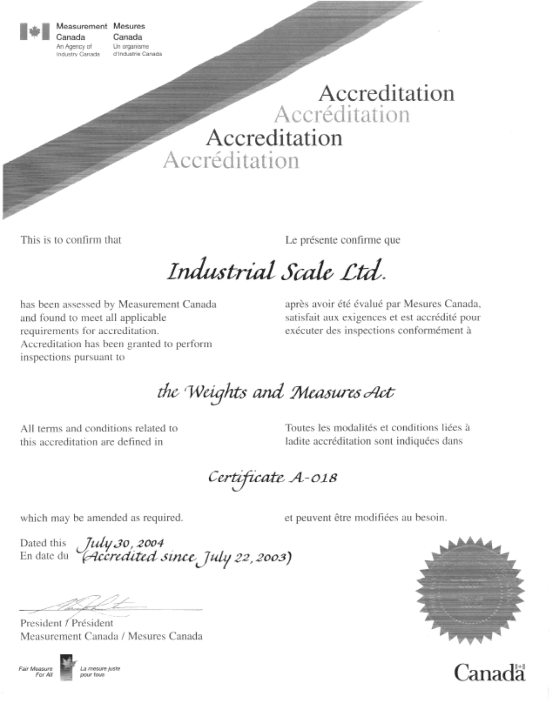 MEASUREMENT CANADA ACCREDITATION